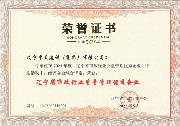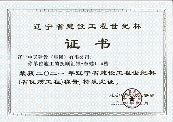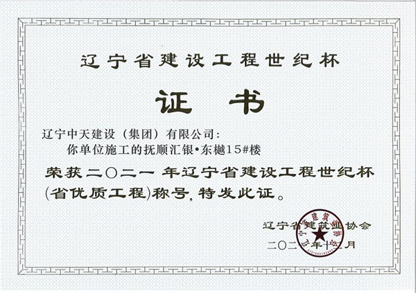 企業(yè)先后榮獲“全國(guó)優(yōu)秀施工企業(yè)”、 “中國(guó)AAA級(jí)信用企業(yè)”、“全國(guó)保障性安居工程建設(shè)勞動(dòng)競(jìng)賽先進(jìn)單位”、“遼寧省最受尊敬企業(yè)”、“遼寧省優(yōu)秀建筑業(yè)企業(yè)”、“遼寧省工程建設(shè)質(zhì)量管理優(yōu)秀企業(yè)”、 “遼寧省守合同、重信用企業(yè)”、遼寧省“AAA級(jí)信用企業(yè)”、 “撫順市安全生產(chǎn)先進(jìn)單位、紅旗單位”、“撫順市安康杯競(jìng)賽先進(jìn)集體”等多項(xiàng)殊榮。